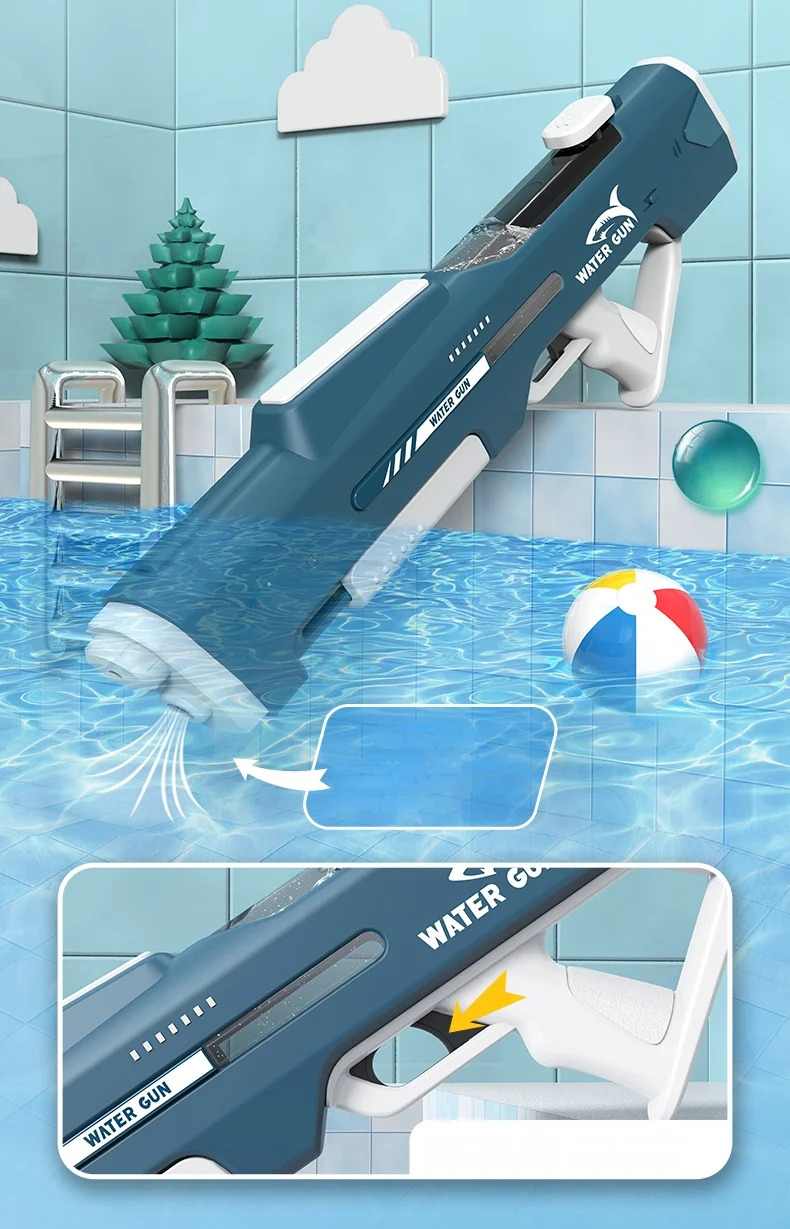 Pistola de agua eléctrica de gran tamaño para niños y adultos, para usar en la piscina, al aire libre o donde quieras. Tiene características que la hacen completamente única: